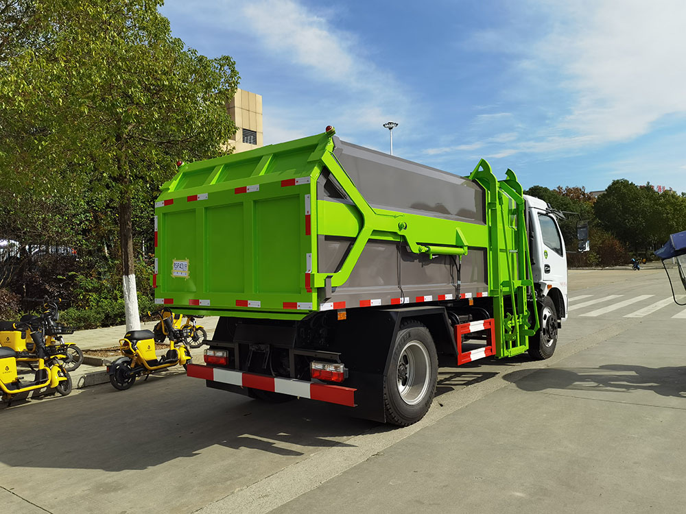 垃圾箱體:箱體采用邊3底4優(yōu)質(zhì)碳鋼制作,內(nèi)外防腐防銹,密封性好,運(yùn)載量大,安全節(jié)能環(huán)保,帶液壓開啟后門,可與城市壓縮垃圾站對接使用,進(jìn)行壓縮垃圾塊的清運(yùn)。