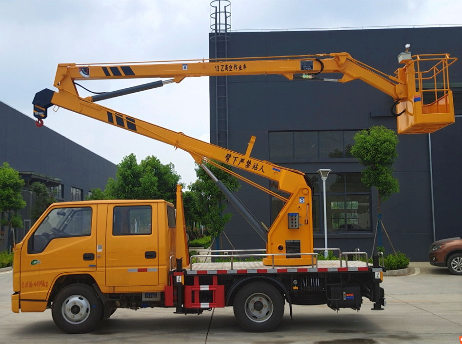 國六江鈴雙排13米藍(lán)牌曲臂高空作業(yè)車改裝配置:液壓360度全回轉(zhuǎn),三節(jié)折疊臂,單液壓舉升缸,帶雙向平衡閥,帶電控操作舉升臂, 四支液壓油缸可調(diào)式支腿帶雙向液壓鎖(支腿操作為手動操作,可單獨**),上下二套操作臺,帶 1 噸吊鉤,**作業(yè)高度 13米,**作業(yè)半徑 5.6 米,**起吊重量1噸。